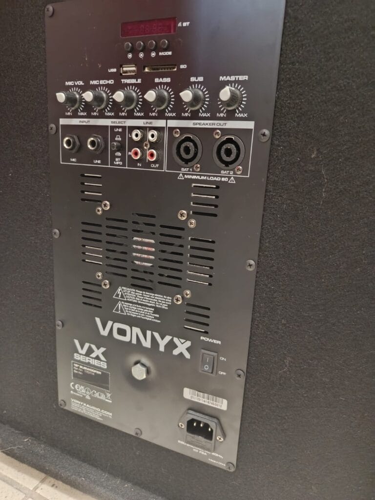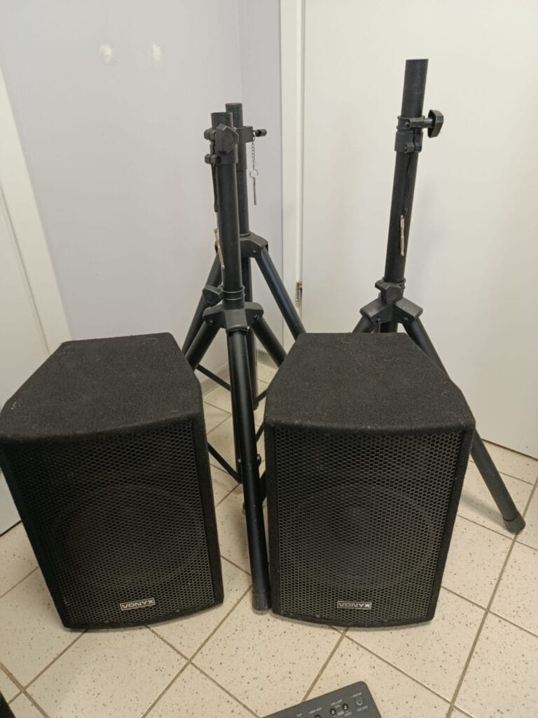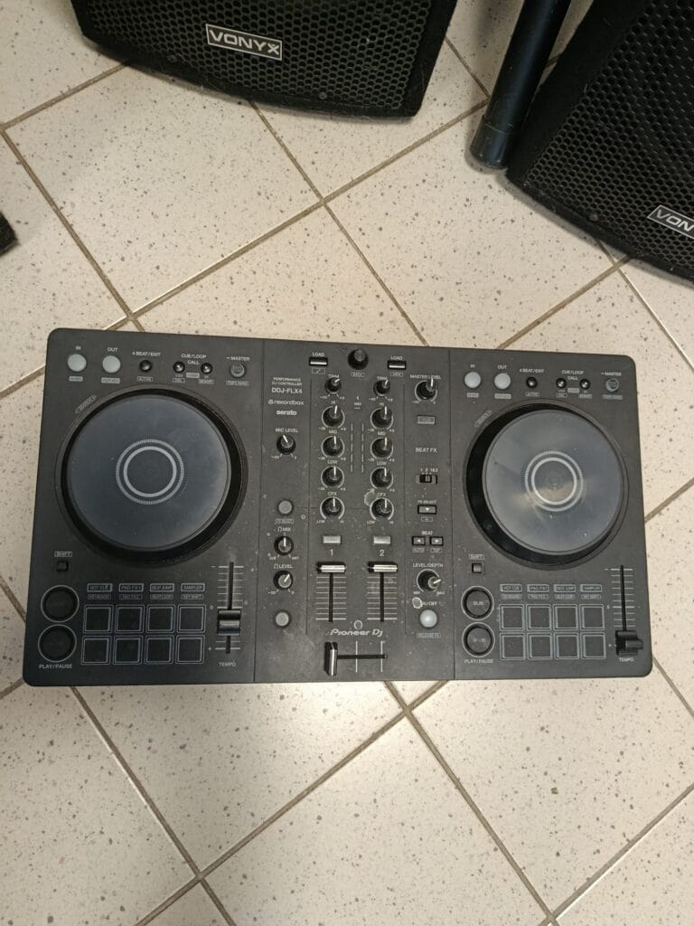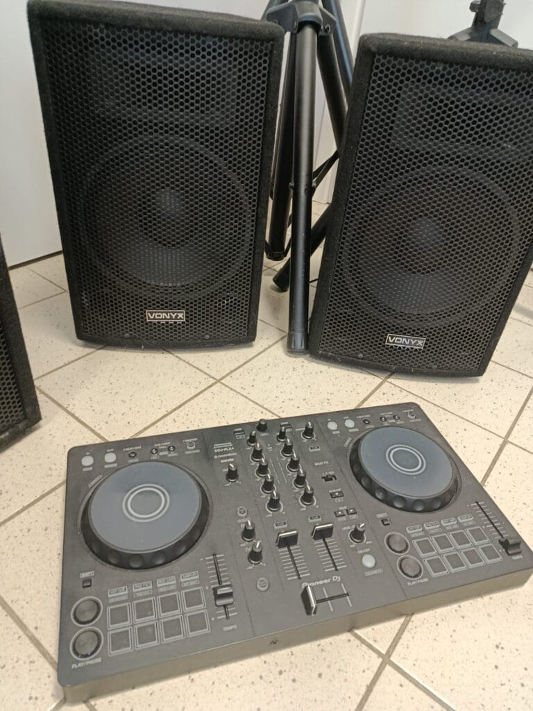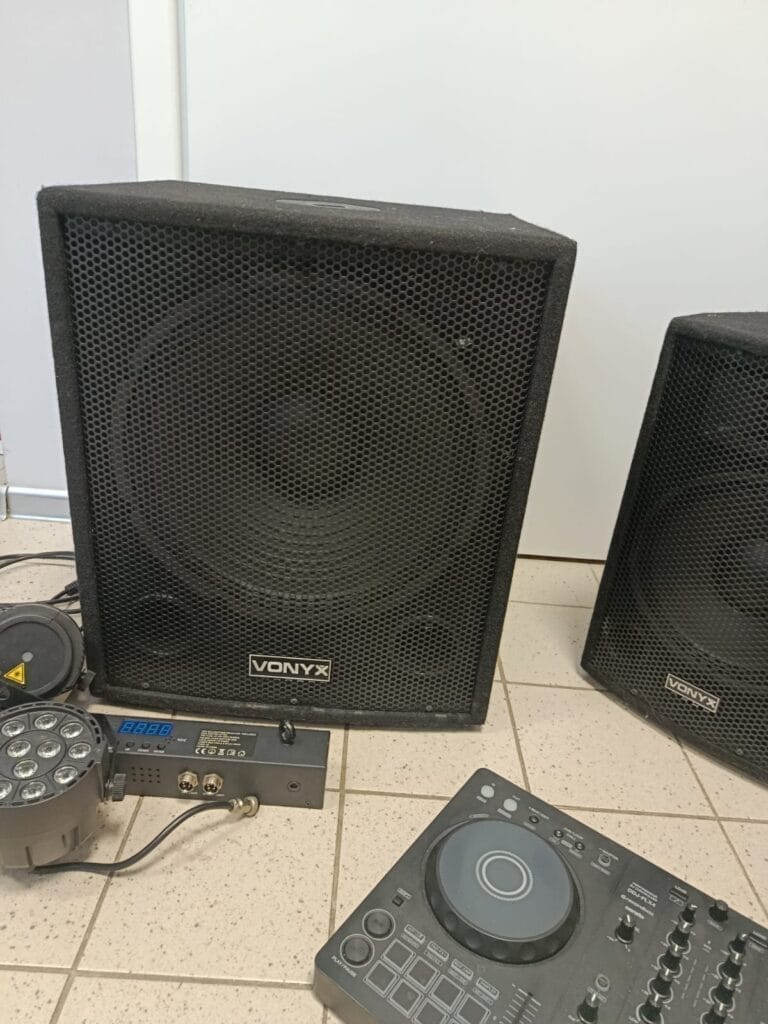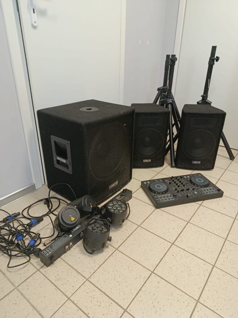 - zestawu sprzętu do obsługi imprez składającego się z: kolumn estradowych VONYX, konsoli DJ DDJ FLX4 oraz lampy